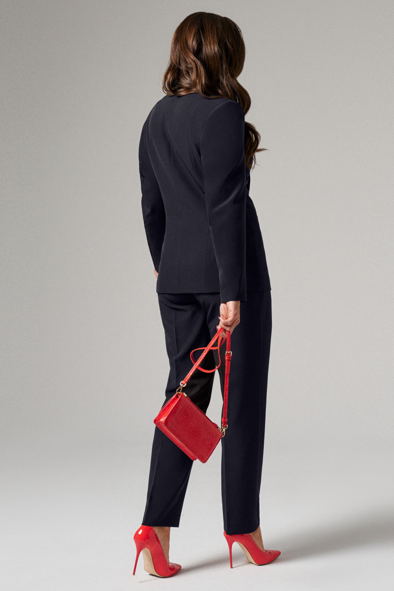 | 54 | Жакет: Длина изделия - 67.5см, Длина рукава - 62см, Ширина плеча - 12см, Ширина по бедрам - 61см, Ширина по груди - 57см, Ширина рукава - 21.7см; Брюки: Высота посадки - 29.5см, Длина брюк без пояса - 100.5см, Длина по внутреннему шву - 78см, Ширина брючин сверху - 74см, Обхват брюк по низу - 39.5см, Ширина по бедрам - 59.5см, Ширина по талии - 46.5см; |