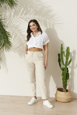| 50 | Брюки: Высота посадки - 28.5см, Длина брюк без пояса - 97.5см, Длина по внутреннему шву - 74.5см, Ширина брючин сверху - 72см, Обхват брюк по низу - 37см, Ширина по бедрам - 57.5см, Ширина по талии - 40см; |