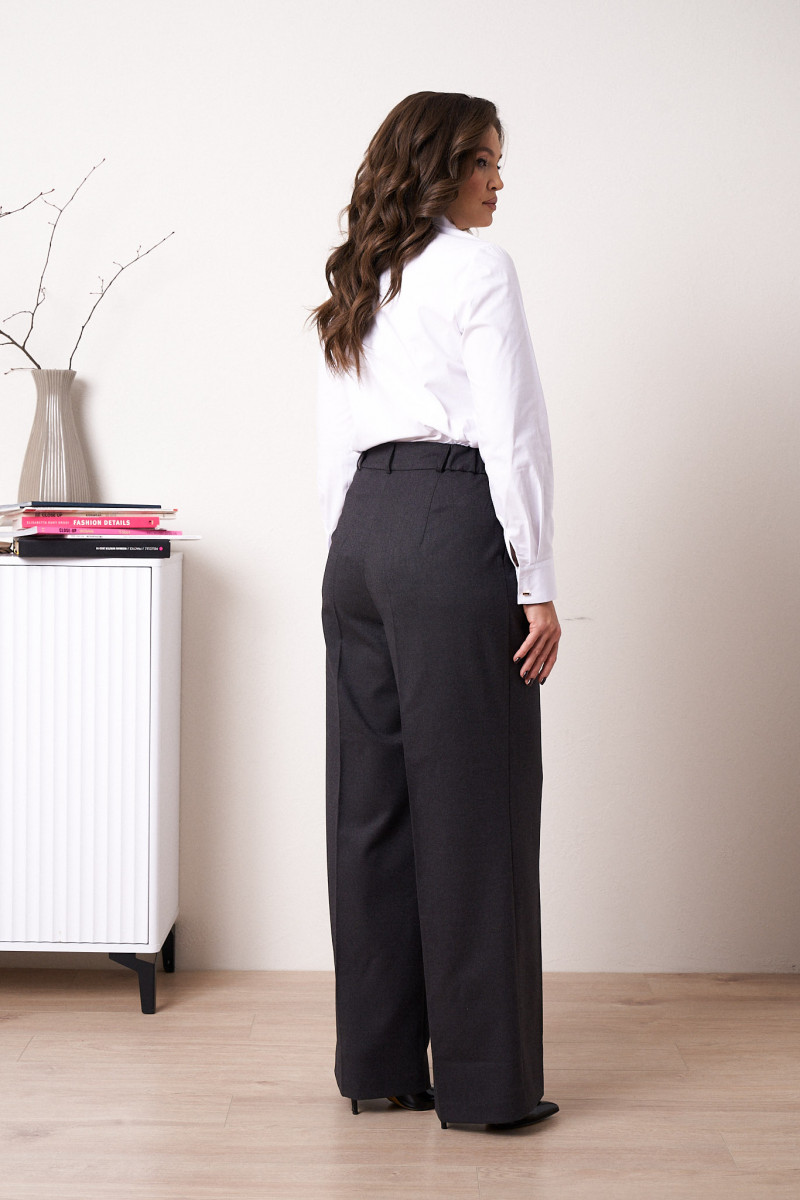 Брюки женские из смесовой ткани для повседневной носки прямого силуэта. Верхний срез брюк обработан притачным поясом со вставками на резинке в боковых частях брюк. Передняя часть брюк имеет четыре талиевые вытачки. Задняя часть брюк имеет две талиевые вытачки. Застежка в брюках на петлю пуговицу, а также на тесьму-молнию в среднем шве брюк. В боковых швах располагаются боковые прорезные карманы с подкройным бочком. Красивые и стильные брюки, в которых вы будете чувствовать себя уверенной.