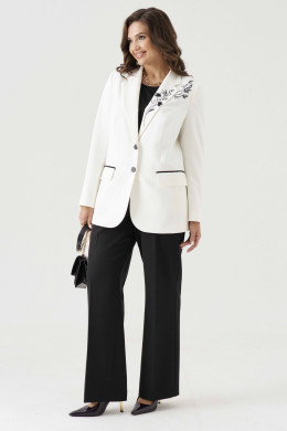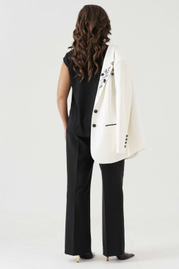 | 48 | Жакет: Длина изделия - 73см, Длина рукава - 62см, Ширина плеча - 11.5см, Ширина по бедрам - 56см, Ширина по груди - 51.5см, Ширина рукава - 18.8см; Брюки: Высота посадки - 28см, Длина брюк без пояса - 106.5см, Длина по внутреннему шву - 83см, Ширина брючин сверху - 69см, Обхват брюк по низу - 50см, Ширина по бедрам - 53см, Ширина по талии - 36см; Блузка: Длина изделия - 63см, Ширина плеча - 15.5см, Ширина по груди - 55см, Ширина по низу - 60см, Ширина рукава - 19см; |