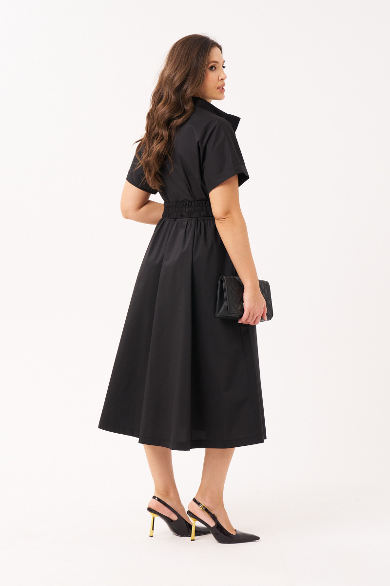 Платье женское из смесовой ткани для повседневной носки. Платье, расширенное к низу, а также отрезное по линии талии и имеет сборку. Перед имеет две нагрудные вытачки. В боковом шве имеются потайные прорезные карманы. Горловина обработана втачной планкой и стойкой. Рукава цельнокроеные, низ рукава обработан отлетной манжетой, длинна рукава чуть выше локтя. Длинна платья макси. Для придания формы в области талии имеется пояс из основной ткани с застежкой на кнопки. В платье имеются по планке декоративные закрепки. За счет большого содержания хлопка в платье, ваша кожа будет чувствовать себя комфортно. Красивое и элегантное платье в котором вы будете выглядеть неотразимо.