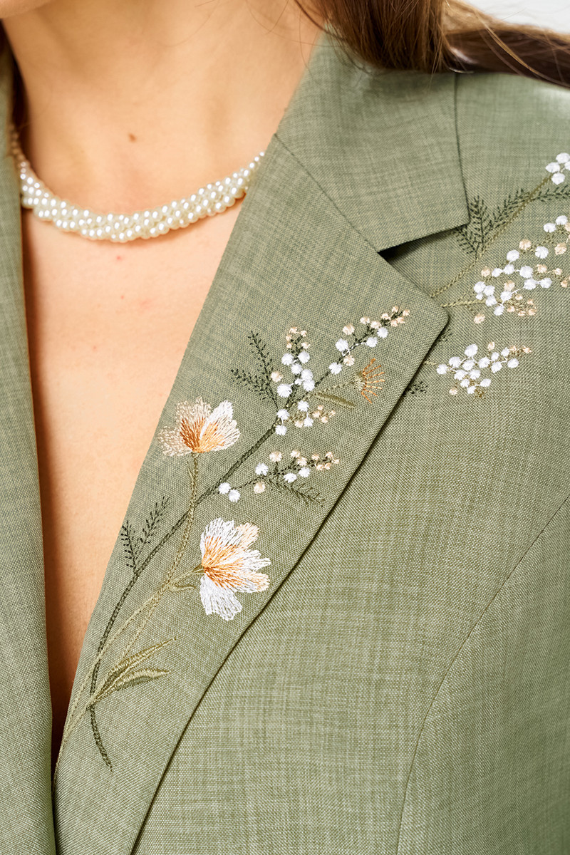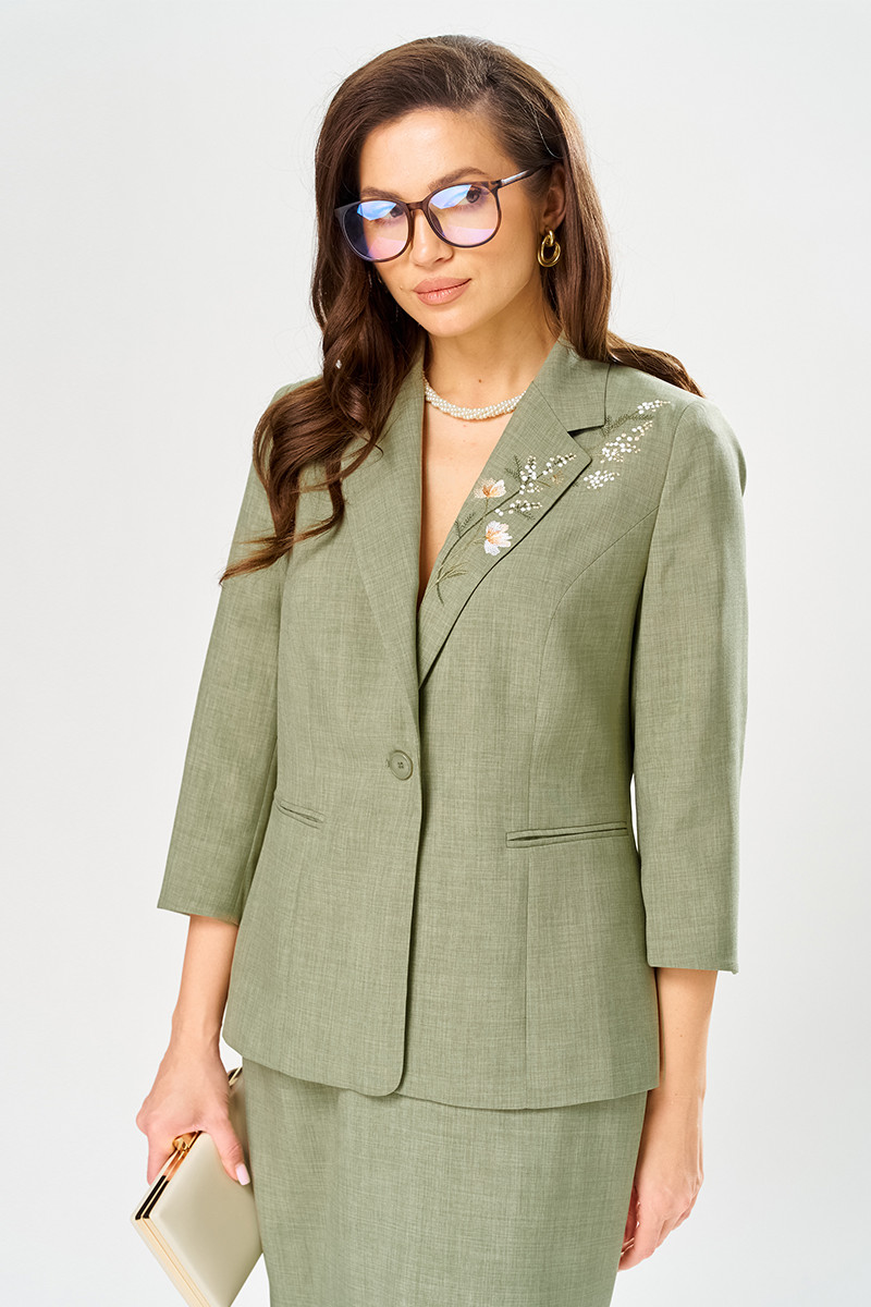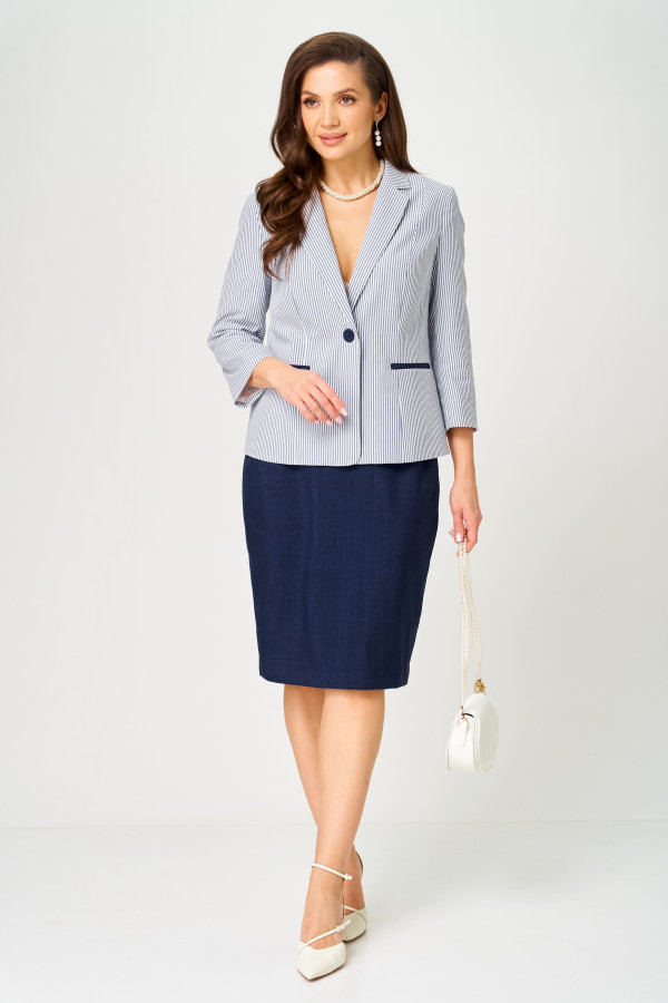 | 54 | Жакет: Длина изделия - 64,5см, Длина рукава - 48,5см, Ширина плеча - 11,7см, Ширина по бедрам - 60см, Ширина по груди - 57см, Ширина рукава - 21,2см; Юбка: Длина юбки без пояса - 61,5см, Ширина по бедрам - 60см, Ширина по талии - 43см; |