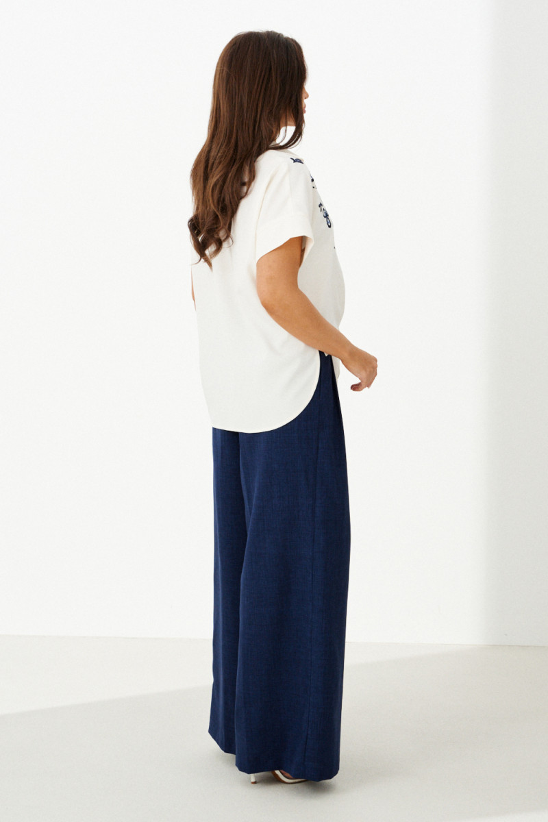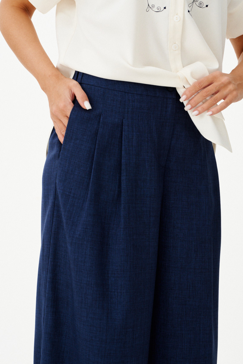 | 48 | Брюки: Высота посадки - 30см, Длина брюк без пояса - 105,5см, Длина по внутреннему шву - 81см, Ширина брючин сверху - 82,5см, Обхват брюк по низу - 77см, Ширина по бедрам - 54,5см, Ширина по талии - 38,5см; |