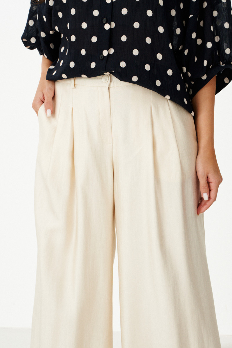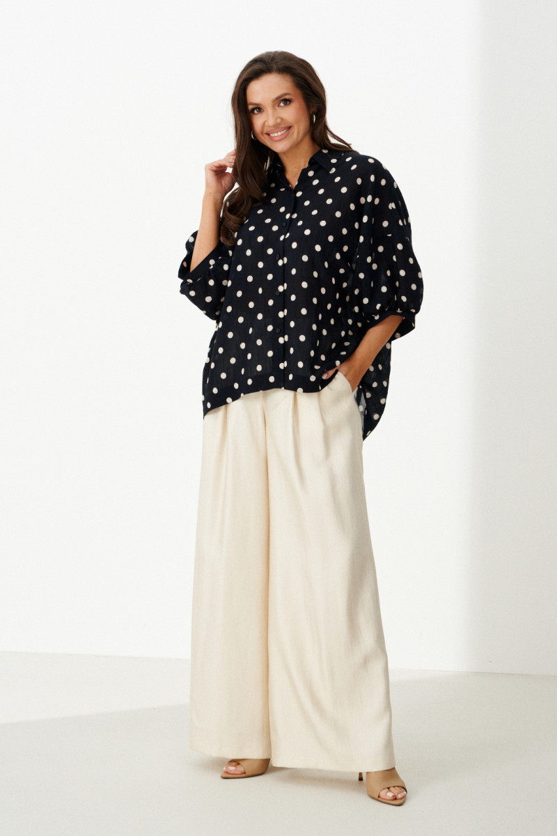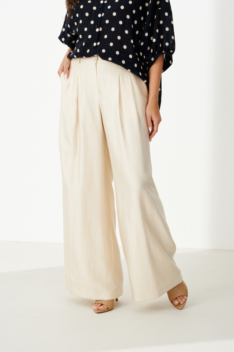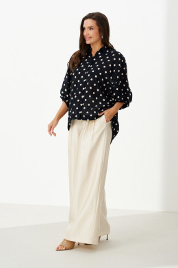 | 56 | Брюки: Высота посадки - 31см, Длина брюк без пояса - 107см, Длина по внутреннему шву - 81см, Ширина брючин сверху - 91см, Обхват брюк по низу - 78.5см, Ширина по бедрам - 58.5см, Ширина по талии - 46см; |