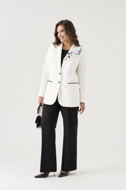 | 48 | Жакет: Длина изделия - 73см, Длина рукава - 62см, Ширина плеча - 11.5см, Ширина по бедрам - 56см, Ширина по груди - 51.5см, Ширина рукава - 18.8см; Брюки: Высота посадки - 28см, Длина брюк без пояса - 106.5см, Длина по внутреннему шву - 83см, Ширина брючин сверху - 69см, Обхват брюк по низу - 50см, Ширина по бедрам - 53см, Ширина по талии - 36см; Блузка: Длина изделия - 63см, Ширина плеча - 15.5см, Ширина по груди - 55см, Ширина по низу - 60см, Ширина рукава - 19см; |