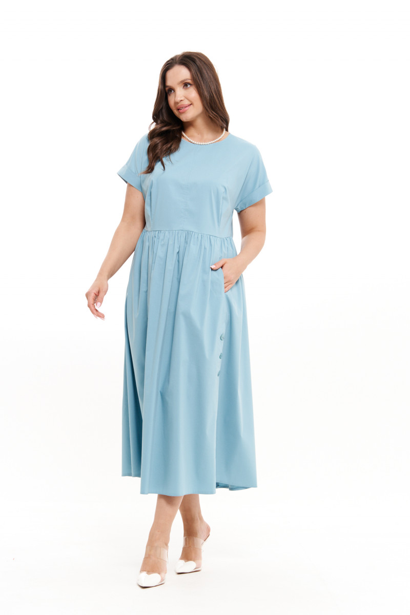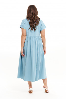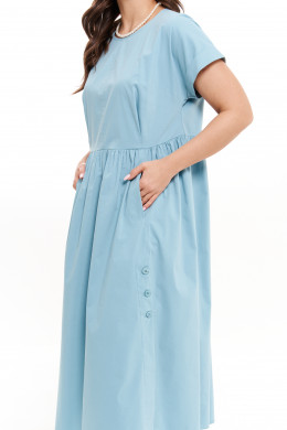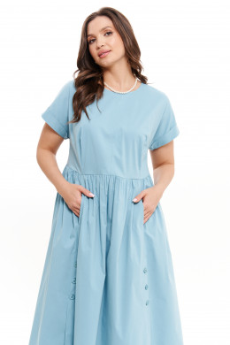 Платье женское из смесовой ткани для повседневной носки прямого силуэта. Платье отрезное по линии талии. Перед платья имеет две складки и средний шов. Переднее полотнище юбки со сборкой по талии, а также имеются в рельефе карманы идущие от линии талии до низа изделия, а также две шлицы с застежкой на петли пуговицы с разрезами к низу изделия. Спинка со средним швом и двумя талиевыми вытачками, застежка-капелька на петлю и пуговицу. Юбка без боковых швов. Заднее полотнище юбки имеет два рельефа идущих от линии талии и до низа изделия. Горловина чуть расширена. Рукава цельнокроеные с отложной манжетой, короткие. Длина изделия макси. По платью имеются декоративные строчки: по среднему срезу переда, рельефу по заднему полотнищу и по складкам по переду имеется декоративный прямоугольник. Красивое и комфортное платье, которое станет отличным дополнением к вашему гардеробу.