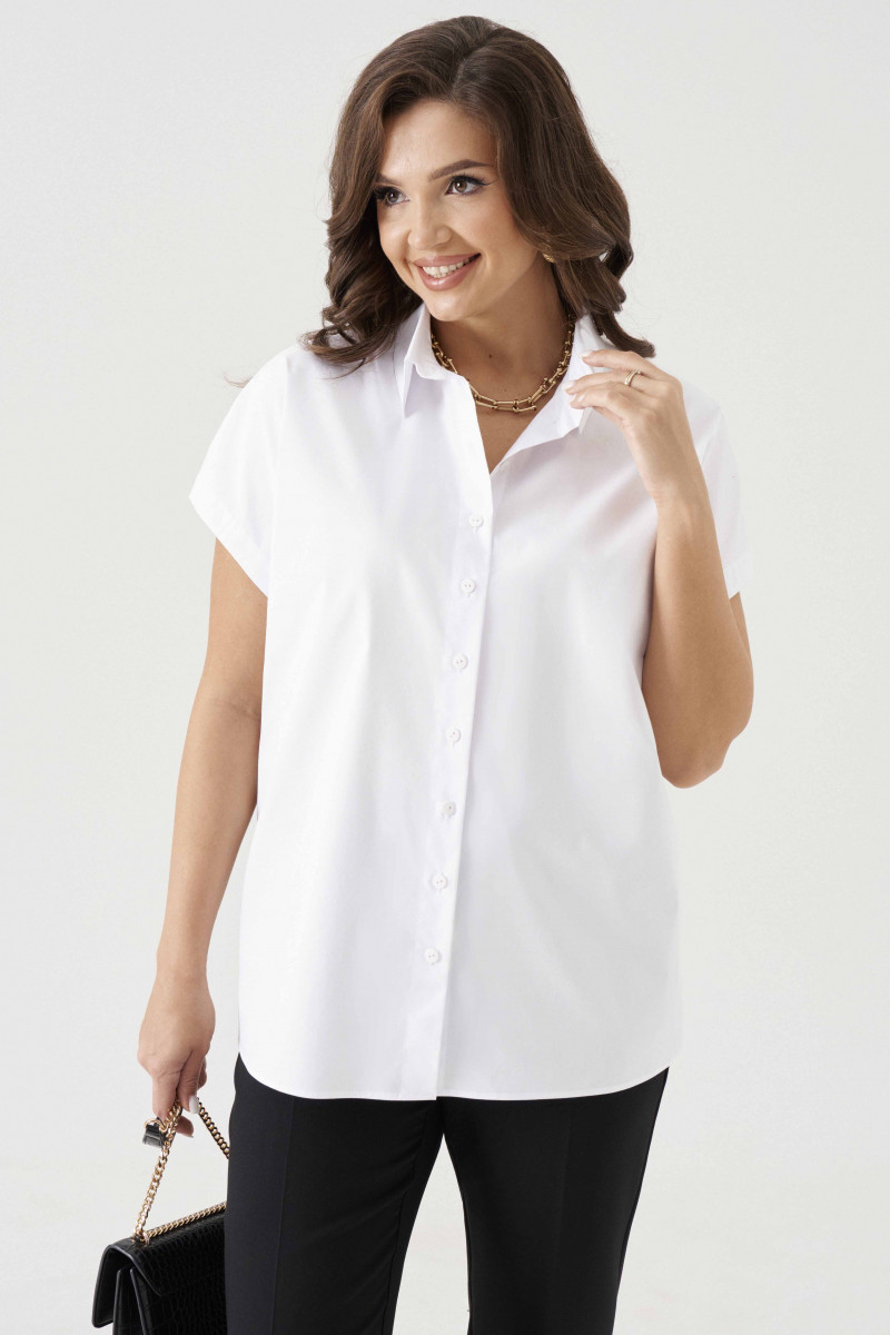 Блузка женская из хлопковой ткани для повседневной носки прямого силуэта. Блузка имеет центральную застежку на обметанные петли и пуговицы. В боковом шве имеются небольшие разрезы. Горловина обработана рубашечным воротником с отрезной стойкой. Линия плеча спущена. Рукав цельнокроеный, обработанный обтачкой. Очень стильная и модная блузка, которая будет гармонично смотреться на вашей фигуре.