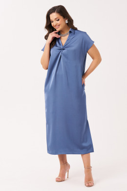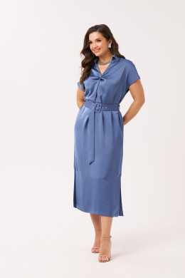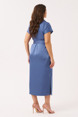 Платье женское из струящейся ткани для повседневной и торжественной носки. Платье длинное прямое, рукав короткий, воротник- стойка. На передней части платья декоративный элемент на груди. В боковыых швах порезные карманы, разрезы. Есть шлевки. Платье укомплектовано поясом из основной ткани изделия. Без подкладки.