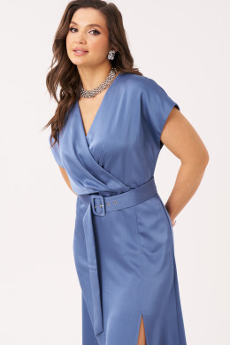 Платье женское из струящейся ткани для торжественной носки. Платье полуприлегающего силуэта. Платье на запах, а также отрезное по линии талии. Лиф переда имеет складки. Лиф спинки имеет две талиевые вытачки и средний шов. Горловина V-образная. Рукава цельнокроеные, короткие. Юбка платья, расширенная к низу. Переднее полотнище юбки имеет разрез в шве, который который выходит на колено.Заднее полотнище юбки со средним швом и двумя вытачками. Платье длиной миди. Данная модель платья в элегантном тёмно-голубом цвете покорит вас своей красотой и великолепной посадкой. В данном платье вы будете выглядеть неотразимо и будете ловить на себе восхищенные взгляды.