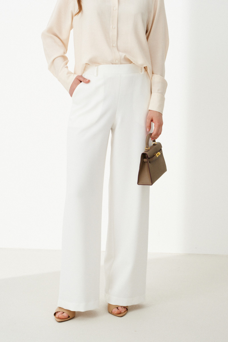 | 44 | Брюки: Высота посадки - 24см, Длина брюк с поясом - 112см, Длина по внутреннему шву - 81,5см, Ширина брючин сверху - 67см, Обхват брюк по низу - 61,2см, Ширина по бедрам - 49см, Ширина по талии брюк - 33,5см; |
