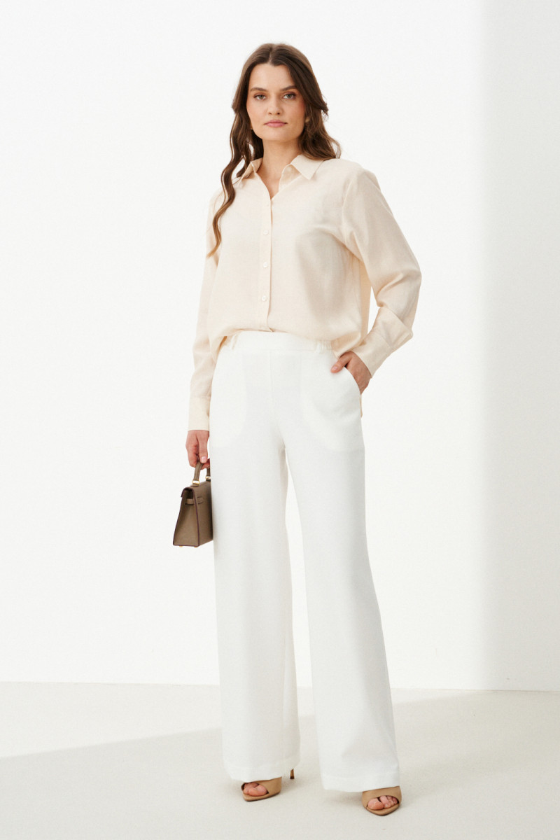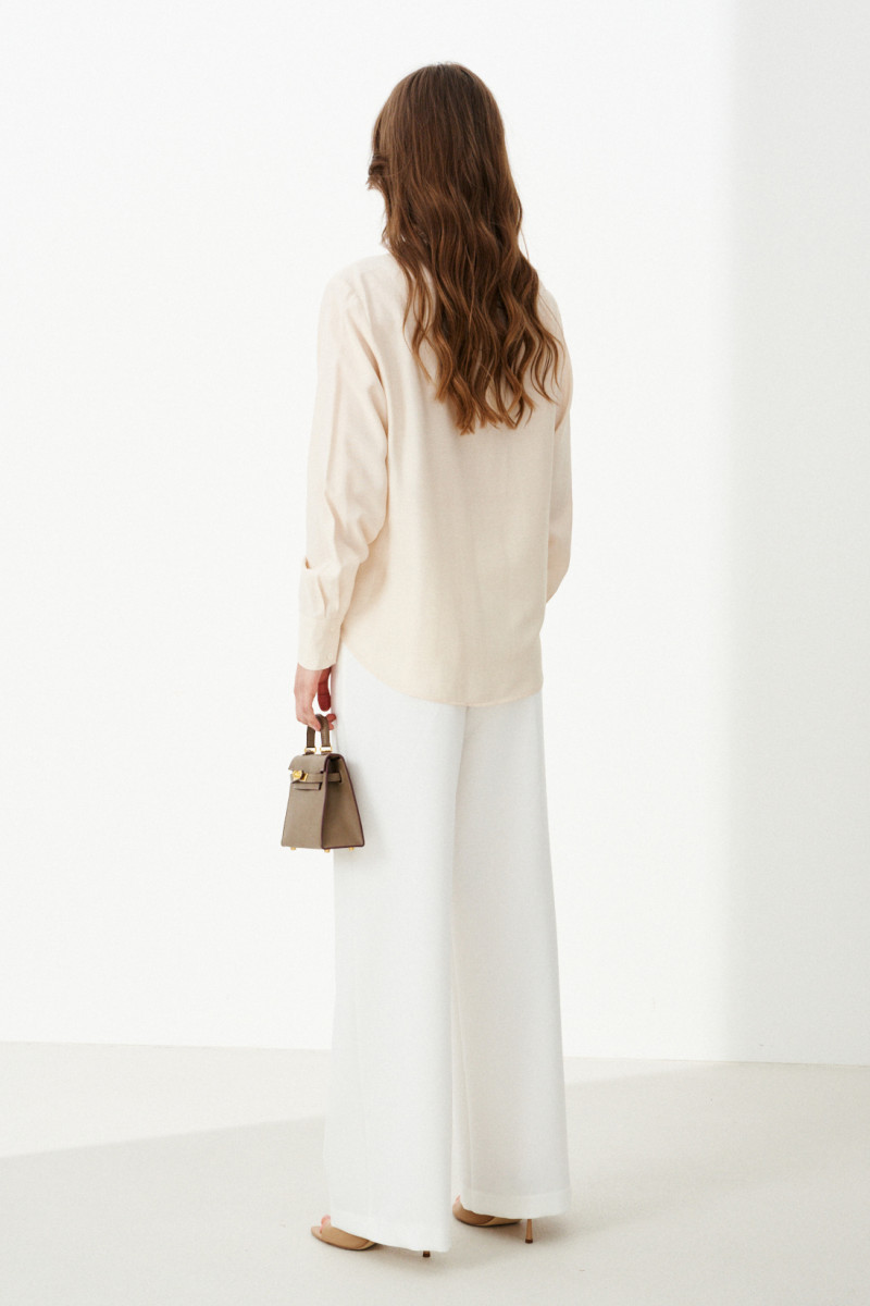 | 40 | Брюки: Высота посадки - 23см, Длина брюк с поясом - 112см, Длина по внутреннему шву - 81,5см, Ширина брючин сверху - 63см, Обхват брюк по низу - 59,2см, Ширина по бедрам - 45см, Ширина по талии брюк - 29,5см; |