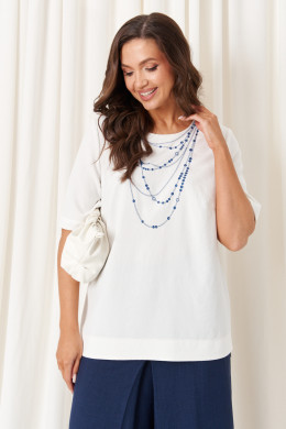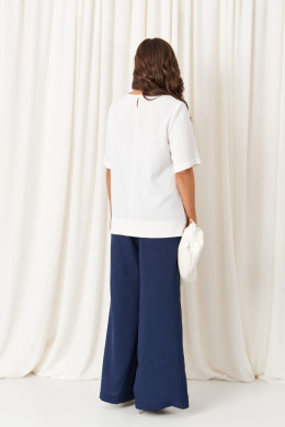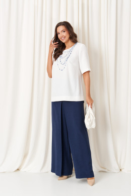Брючный костюм (блузка, брюки) 86420 (Бело-синий)