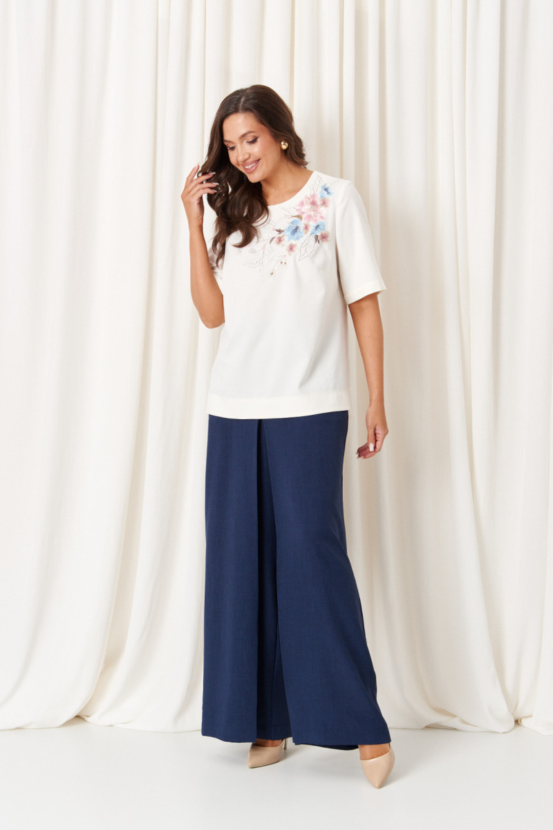 | 58 | Блузка: Длина изделия по спинке - 65см, Длина рукава - 31см, Ширина плеча - 11,2см, Ширина по бедрам - 68см, Ширина по груди - 62см, Ширина по талии - 64см, Ширина рукава - 23см; Брюки: Длина брюк с поясом - 112см, Длина по шаговому шву - 80см, Ширина по бедрам - 65см, Ширина по низу - 35,5см, Ширина по талии - 51см; |