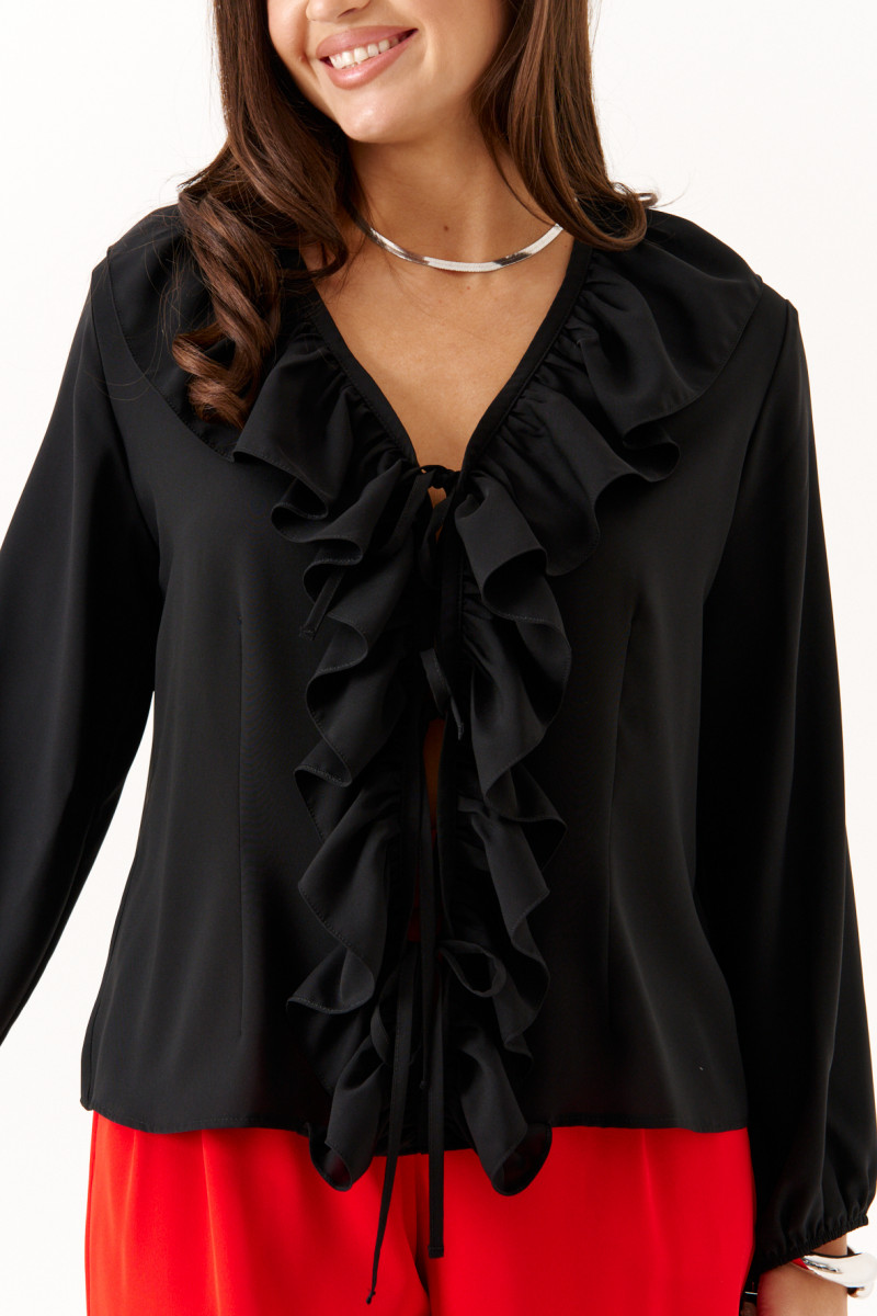| 44 | Блузка: Длина изделия - 58.5см, Длина рукава - 60.5см, Ширина плеча - 14.8см, Ширина по груди - 52см, Ширина по низу - 54см, Ширина по талии - 48см, Ширина рукава - 17.9см; |