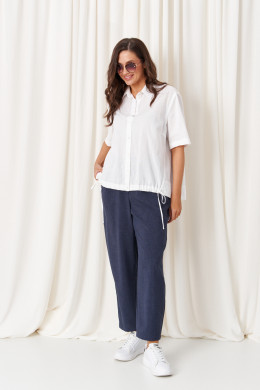 Брючный костюм (блузка, брюки) 87420 (Бело-синий)