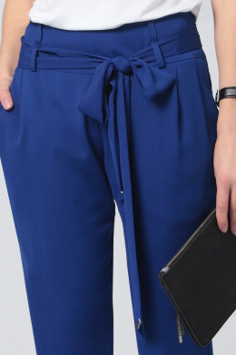 Летние легкие брюки из ткани с матовым нарядным блеском, которая не мнется. Молодежные брюки свободного силуэта со съемным поясом, который завязывается на бедрах в нарядный бант. Брюки с посадкой на бедрах, свободные, зауженные книзу. По бокам удобные глубокие карманы. Брюки отлично сочетаются как с нарядной блузой, так и с повседневным топом. Отличный практичный вариант для лета.