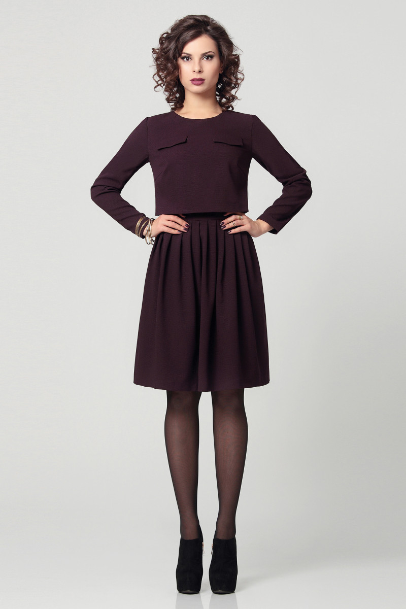 Главное преимущесто - складки по юбке, их контраст с верхом, делает осиной даже широкую талию.