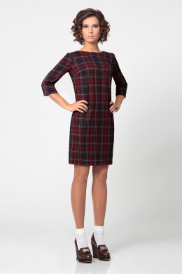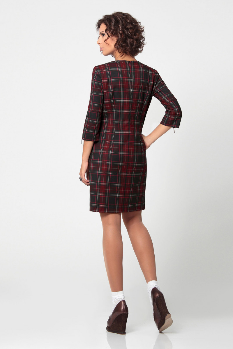 Платье . Из ткани в клетку. Прямого силуэта. Без воротника, с овальным вырезом горловины. С рукавом 3 /4, с широкой манжетой. Манжета декорирована металлической молнией. С карманами в боковых швах. Платье прекрасно подойдет для офиса, а также будет уместно и на официальных мероприятиях.