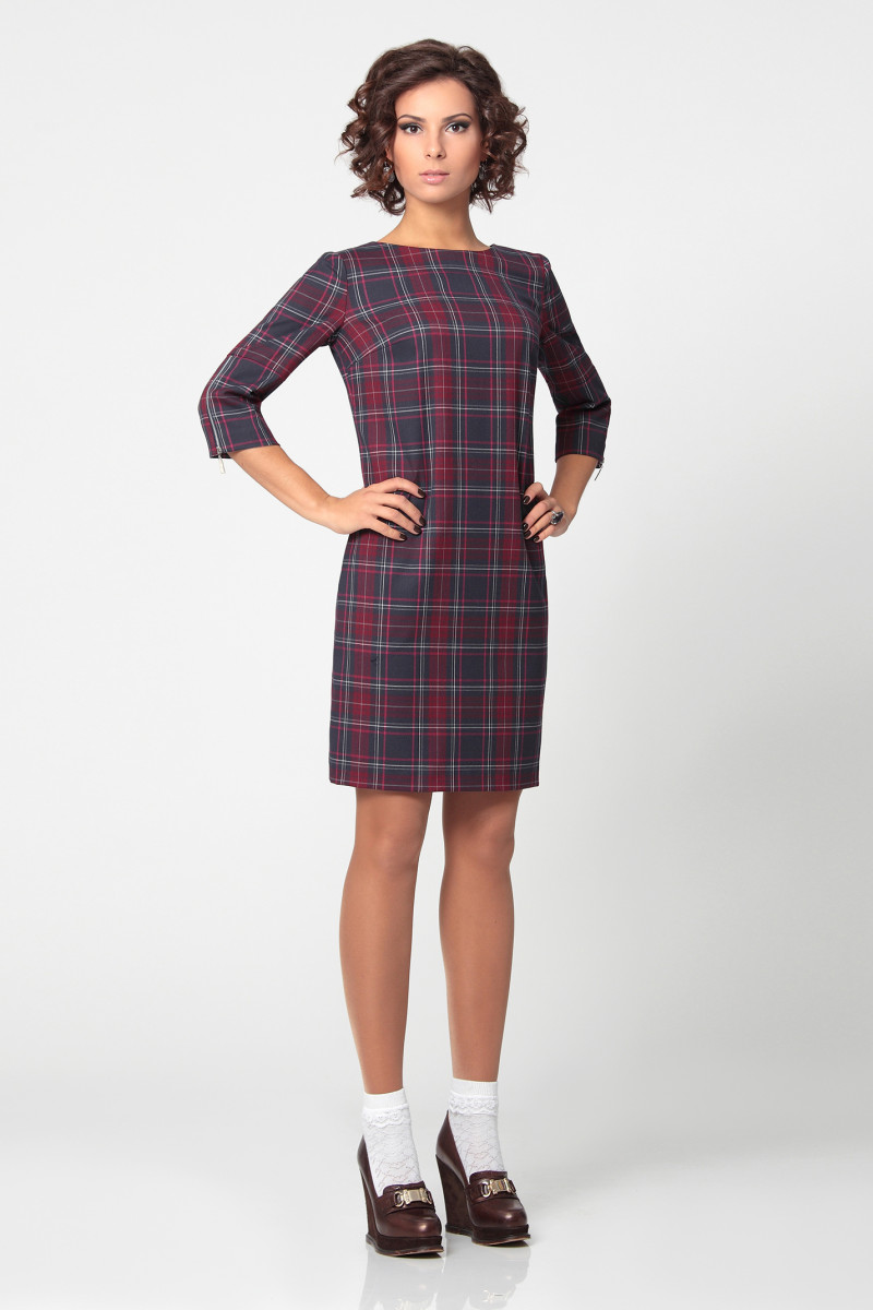 Платье . Из ткани в клетку. Прямого силуэта. Без воротника, с овальным вырезом горловины. С рукавом 3 /4, с широкой манжетой. Манжета декорирована металлической молнией. С карманами в боковых швах. Платье прекрасно подойдет для офиса, а также будет уместно и на официальных мероприятиях.