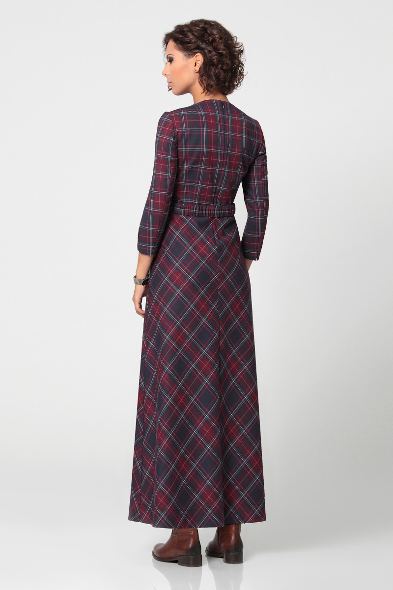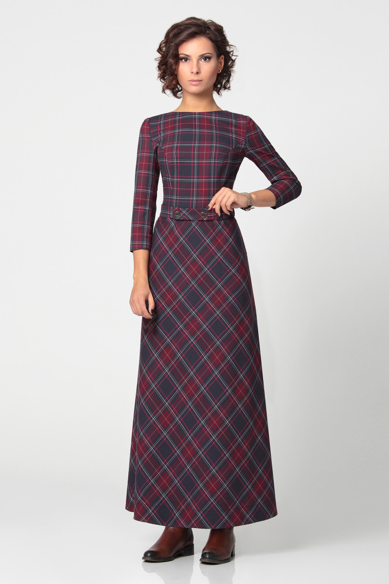 Длинное платье из полувискозной ткани с рисунком в клетку. Такое платье нарядный вариант для осенних дней. Платье, приталенное по талии, юбка слегка расширена, рукав длиной за локоть. Платье со съемным поясом, который подчеркивает талию, а клетка, которая располагается по диагонали на юбки, зрительно вытягивает ноги, делая фигуру в таком наряде стройнее и изящней.