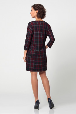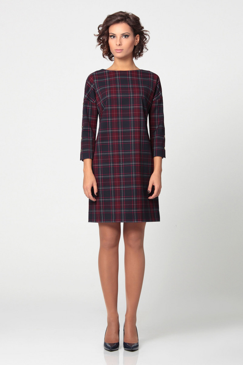 Платье из полувискозной ткани с рисунком в клетку. Платье прямого силуэта, длиной до коленей, с глубокими карманами в боковом шве. Рукава декорированы металлическими кнопками. К платью предлагается пояс на резинке, для тех, кто хочет подчеркнуть талию. Такое платье отличный вариант как для рабочих дней, так и для праздничных.