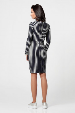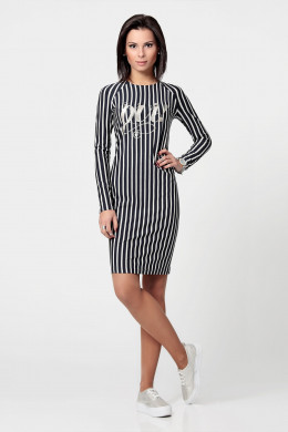 Повседневное платье. Из трикотажа синего цвета в бежевую полоску, с люрексом.