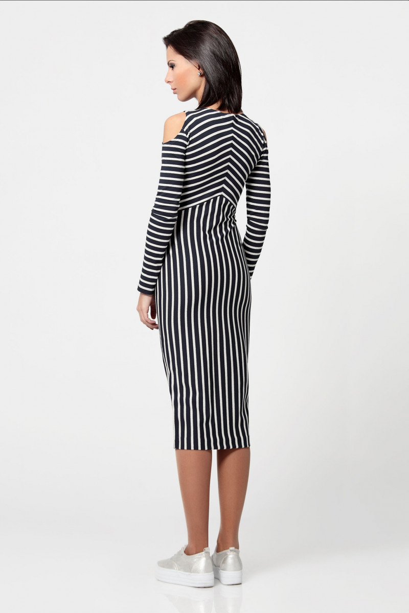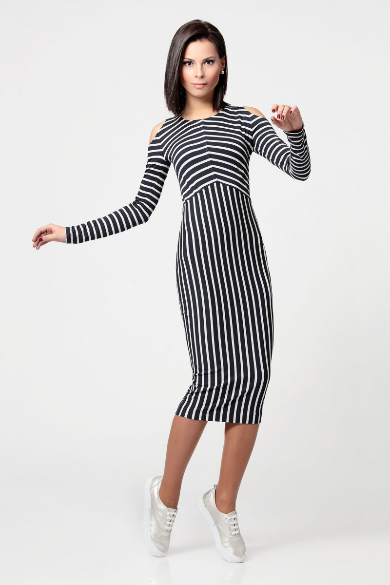 Длина миди зрительно вытянет вашу фигуру, а сексуальные вырезы на плечах добавят вам кокетства и игривого настроения.