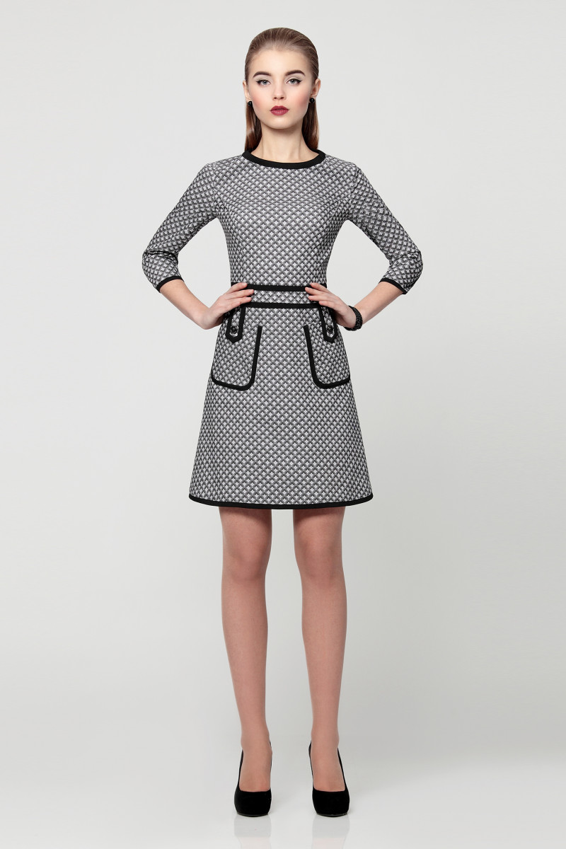 Платье, из хлопковой ткани. Отрезное по линии талии, юбка немного разведена. Горловина овальная, отделана планкой. Рукав до локтя с манжетой. По переду два накладных кармана с застежкой на хлястик. На карманах отделка контрастной планкой. С втачным поясом со вставками. По нижнему срезу отделка планкой. Платье прекрасно сидит, идеально подчеркивает талию и грудь. Такое кокетливое платье идеально подойдет для современных модниц. В нем смело можно отправляться на работу или просто в кафе на свидание. Это платье невероятно удобное, не стесняет движений.
