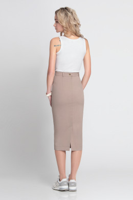 Классическая юбка карандаш из хлопковой ткани со стрейчем. Длина чуть ниже колена. На широком поясе, с застежкой на одну пуговицу, со шлевками. Спереди на шлевке подвеска. В среднем шве шлица.
