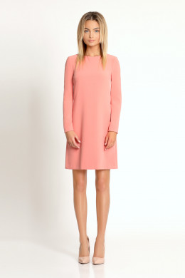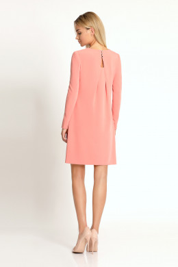 Платье. Нарядное, прямого силуэта. С овальным вырезом горловины. С длинным рукавом. На спинке по горловине вырез "слезка", с застежкой на три пуговицы. По спинке две складки. Спереди брошь.