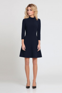 Платье отрезное по линии талии.Лиф прилегающий,юбка расклешенная,конически разведенная.