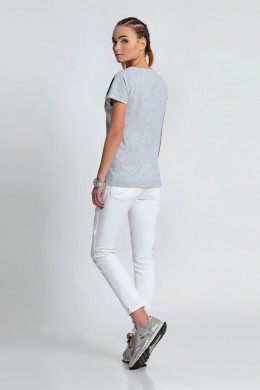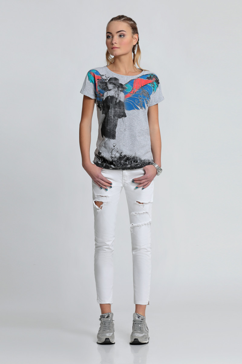 Джемпер из хлопкового трикотажа. Прямого, слегка расширенного силуэта. С коротким цельнокроеным рукавом. Спереди нанесен принт.