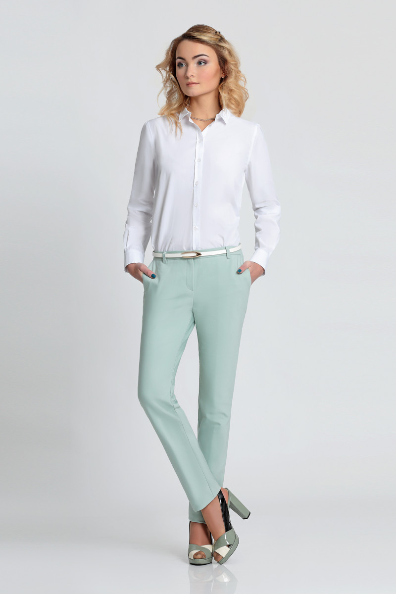 Брюки из хлопковой ткани с эластаном . В классическом стиле с небольшими акцентами, прямые, узкие. Такие брюки - необходимая часть гардероба бизнес леди. Они позволяют придерживаться вех правил дресс-кода, но при этом оставаться женственной. Сзади два карамана-обманки, вход оформлен листочкой. По переду два функциональных кармана в отрезных бочках.