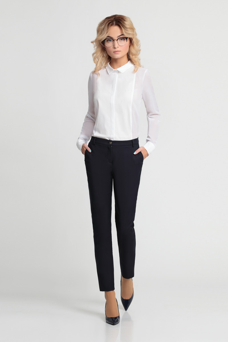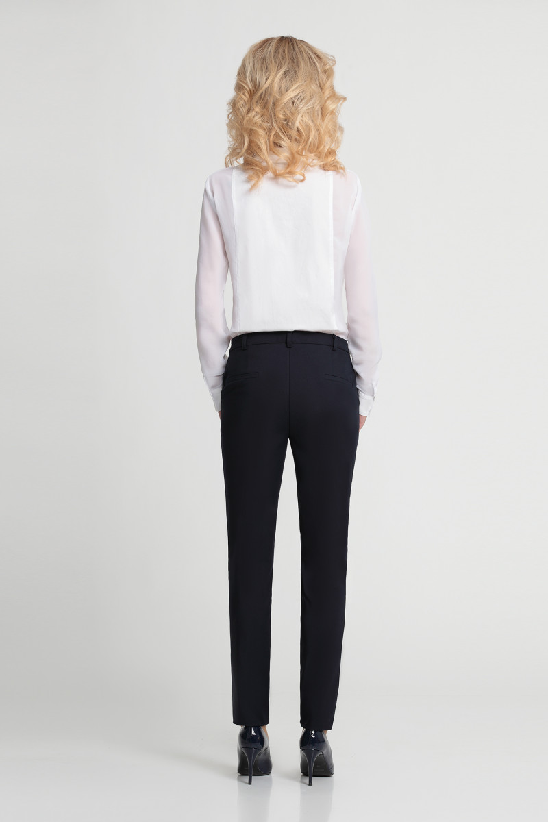 Брюки из хлопковой ткани с эластаном . В классическом стиле с небольшими акцентами, прямые, узкие. Такие брюки - необходимая часть гардероба бизнес леди. Они позволяют придерживаться вех правил дресс-кода, но при этом оставаться женственной. Сзади два карамана-обманки, вход оформлен листочкой. По переду два функциональных кармана в отрезных бочках.