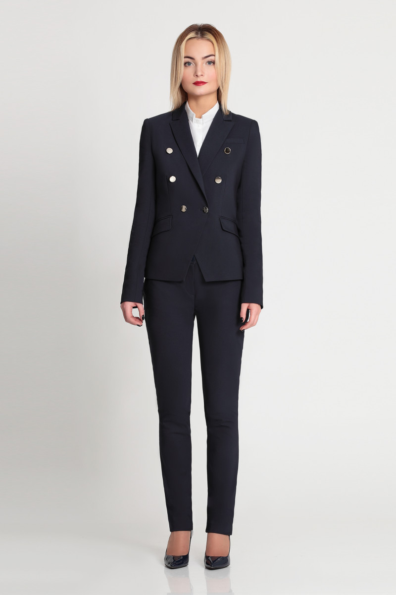 Жакет женский, из плотной хлопковой ткани с эластаном. Женский жакет - один из самых удобных и востребованных предметов одежды. Это вещь, которая должна присутствовать в гардеробе любой девушки или женщины. Эта модель универсальна. В ней вы будете чувствовать себя комфортно и в офисе, и на прогулке с друзьями. Двубортная застежка зрительно вытягивает силуэт и стройнит. Спереди два кармана с клапаном, вход оформлен в рамку.