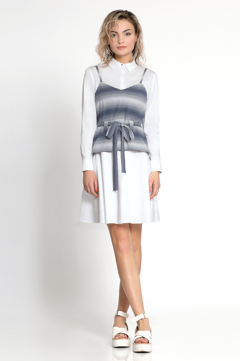| 46 | Платье: Длина изделия - 88см, Длина рукава - 62см, Длина до талии - 42см, Обхват шеи - 38,5см, Ширина плеча - 12см, Ширина по груди - 49см, Ширина по талии - 42см, Ширина рукава - 16,5см; Топ: Длина изделия - 32см, Ширина по груди - 47см, Ширина по низу - 54см; |