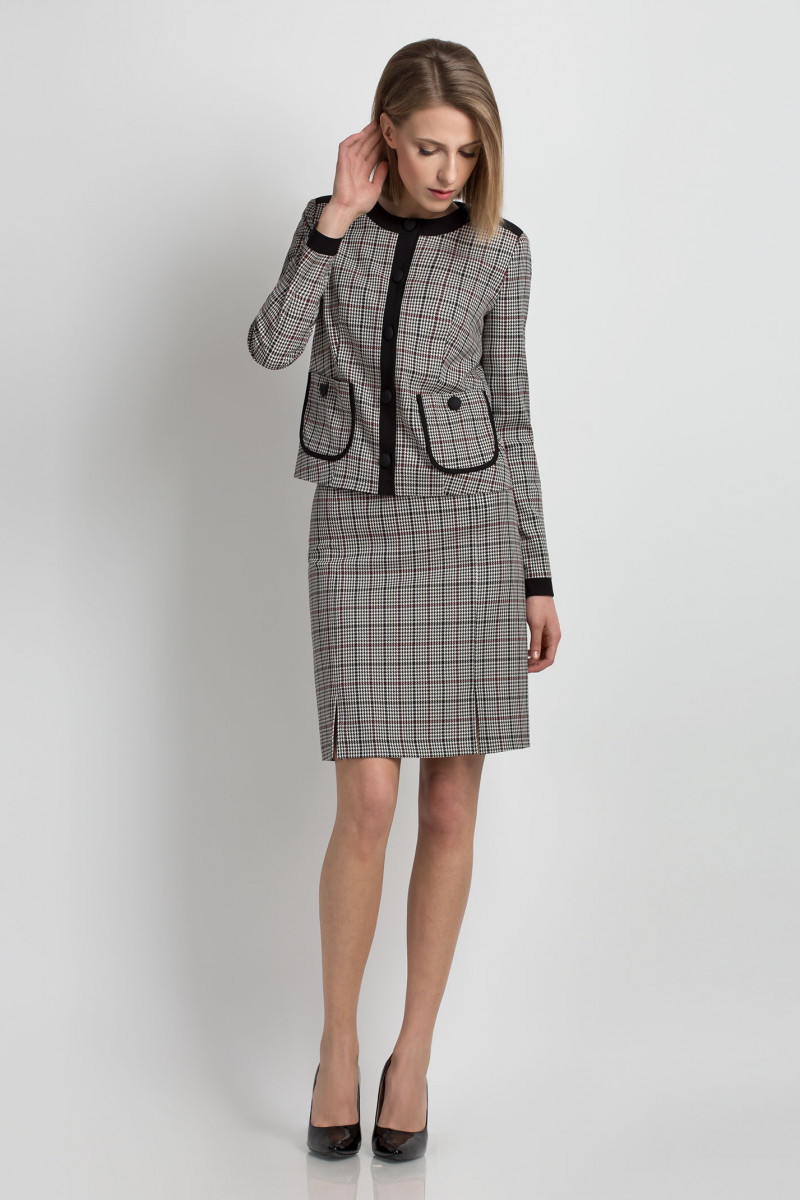 Жакет женский прямого силуэта Рукав втачной По переду планка контрастного цвета и накладные карманы Особенностью жакета являются вертикально выметанные петли