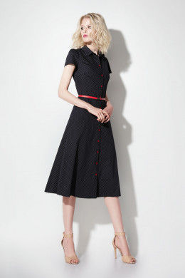 Отрезное по талии платье, с поясом красного цвета, для придания акцента вашей осиной талии
