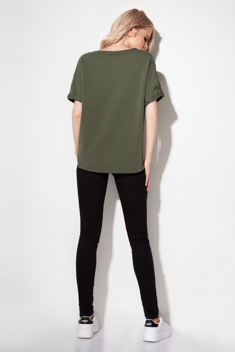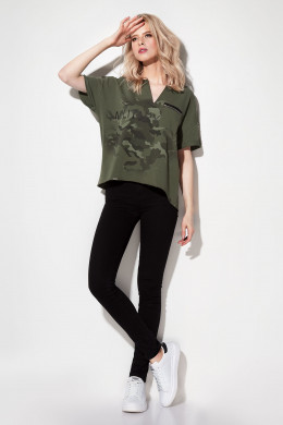 Очень стильная молодёжная туника в стиле" спорт-шик" непременно будет одной из любимых вещей его обладательницы. Свободный силуэт,актуальные на сегодняшний день линии кроя и конструктивные элементы ,современная обработка швов в сочетании с принтом и цветом в стиле "милитари" помогают создать очень современный образ и подчеркнуть женственность энергичной девушке,которая ценит комфорт и при этом хочет эффектно выделяться из толпы.Линия плеча удлинена,Рукав просторный ,короткий с отворотом ,фиксируется с помощью хлопковой тесьмы и двух полуколец.Спереди выполнен один карман ,застёгивающийся на металлическую молнию . Хлопковый трикотаж очень приятен к телу и не стесняет движений. Прекрасный вариант на каждый день для стильной девушки,ведущей активный образ жизни.