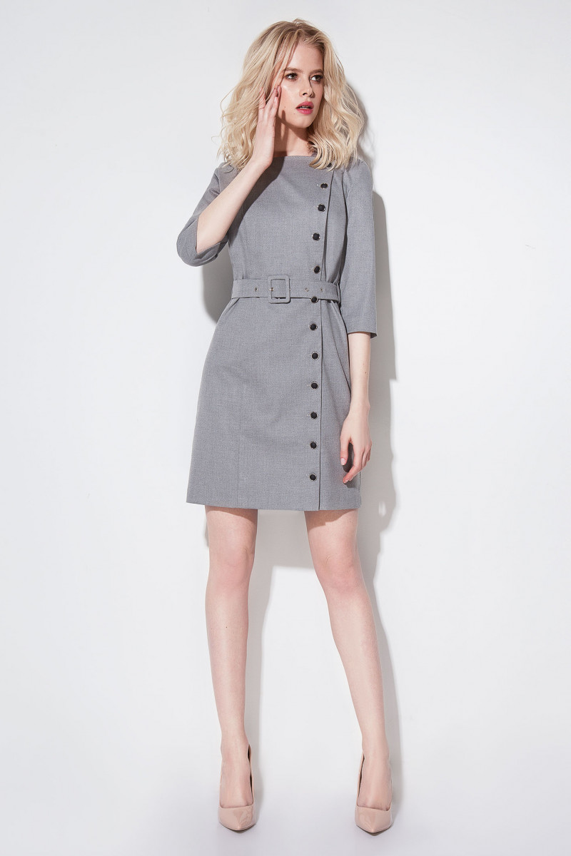 Платье прямое двубортное, застежка на петли-пуговицы . В комплекте пояс