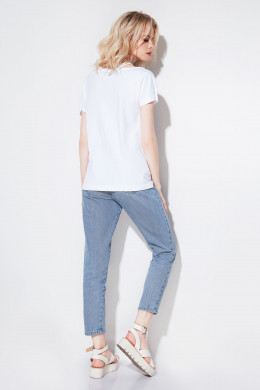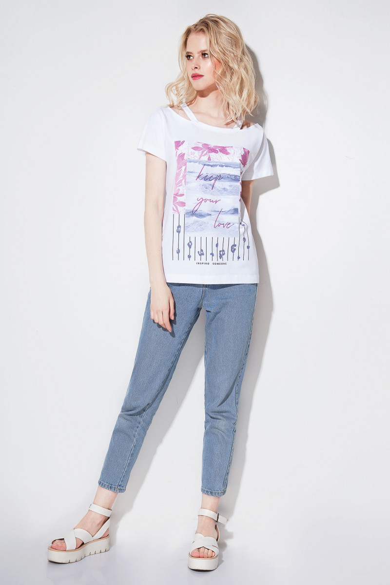 Хлопковый трикотажный джемпер с целонакраёным рукавом.Прямого силуэта и с нежным принтом в морской тематике он будет прекрасно смотреться как с повседневными брюками,так и с классическим жакетом.Изюминке заключается в оригинальной обработке горловины.