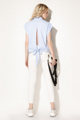 По спинке разрез, внизу блузка завязывается на бант