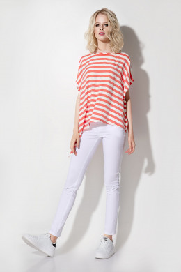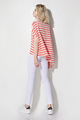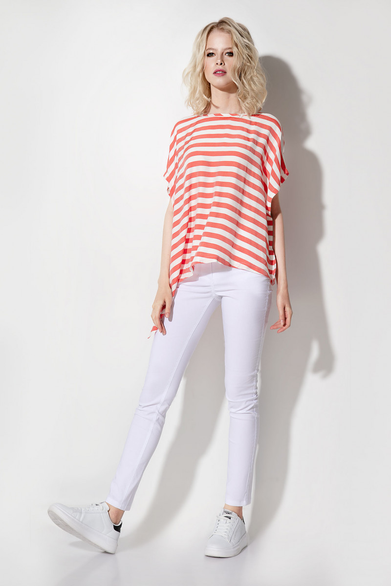 Стильная лаконичная вискозная блузка с рисунком в полоску, которая отлично сочетается с различными вещами вашего гардероба. Блузка свободного силуэта с удлиненным хвостом с одной стороны, с круглым вырезом горловины, рукава цельнокроенные .
