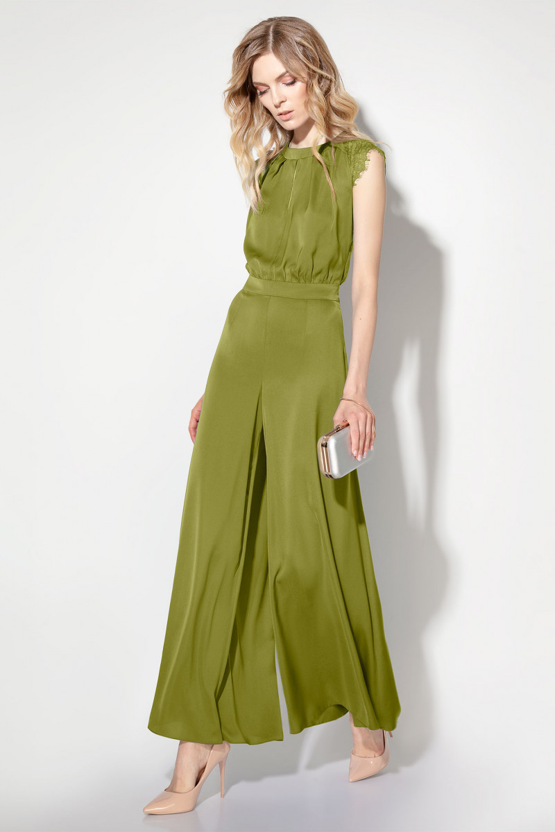 Комбинезон женский длинный, по переду вырез-капля, по спинке разрез-щель