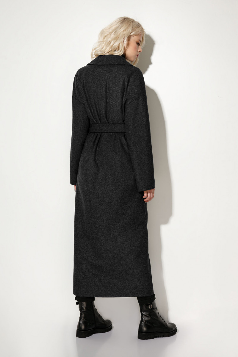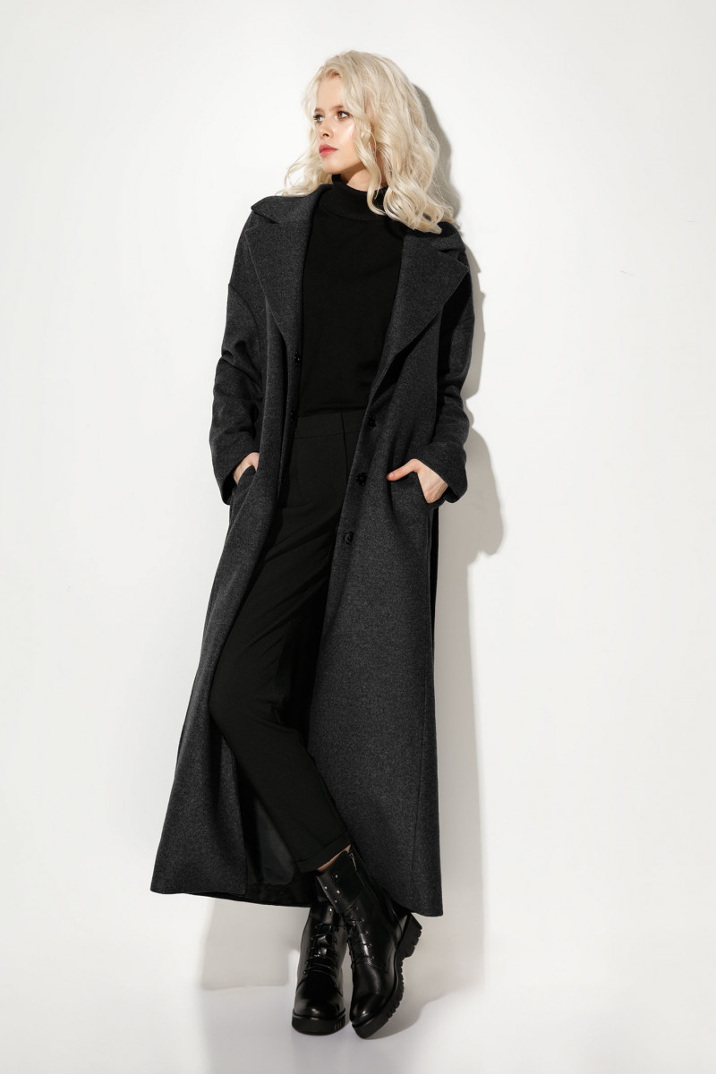 Пальто на притачной подкладке, с карманом в шве.Застежка на потайные кнопки. Рукав расширенный, длинный.