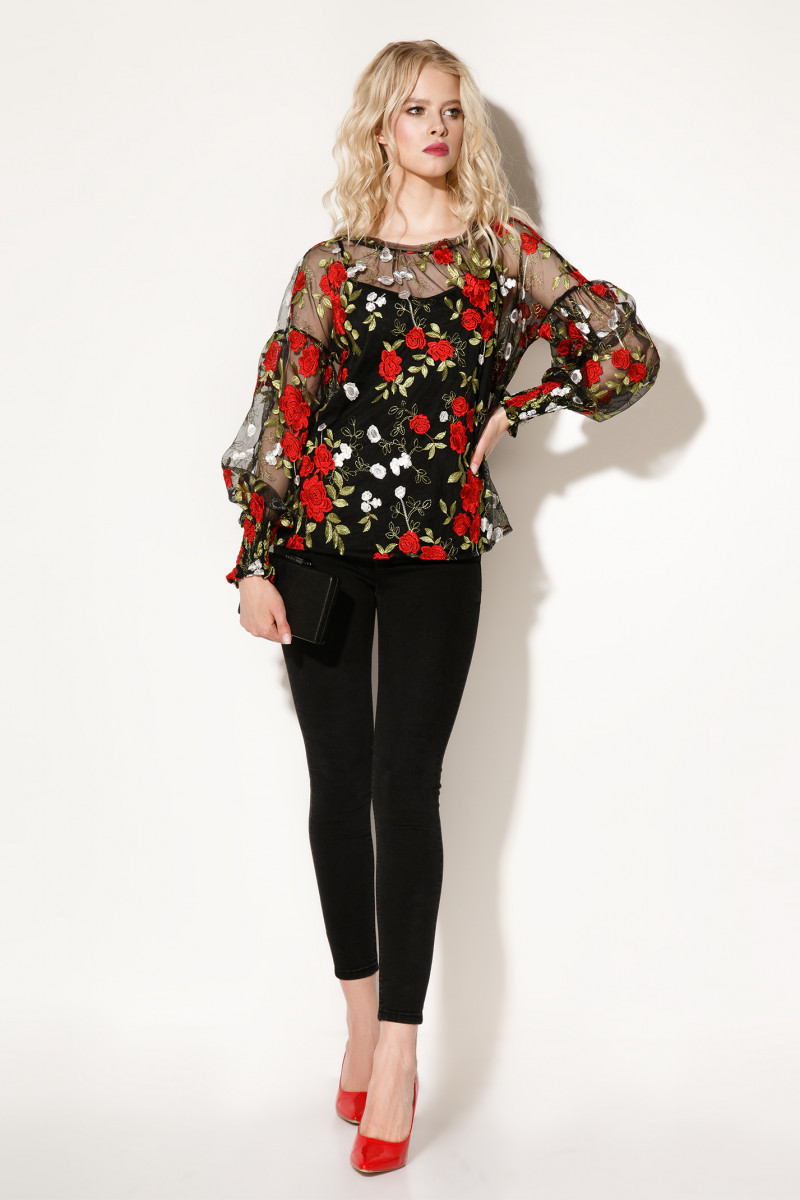 | 42 | Блузка: Длина изделия - 62см, Длина рукава - 46см, Ширина плеча - 22см, Ширина по груди - 50см, Ширина по низу - 57см, Ширина рукава - 24см; Топ: Ширина по груди - 43см, Ширина по низу - 46см; |
