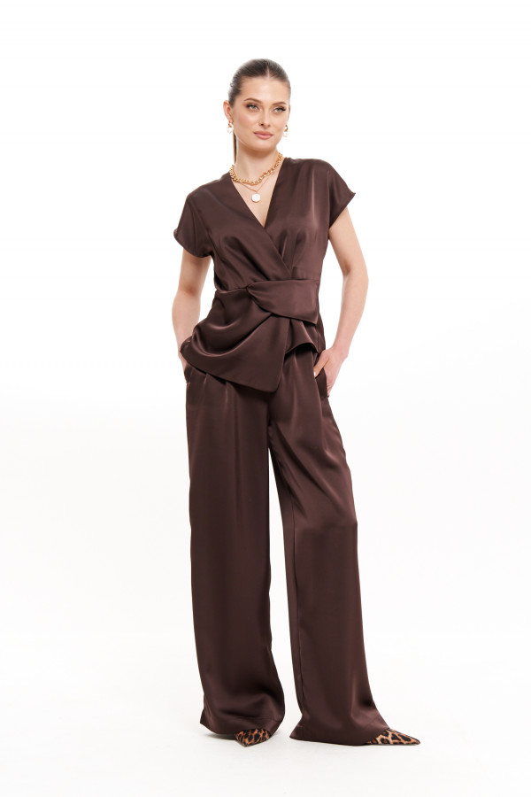 | 48 | Брюки: Высота посадки - 27см, Длина брюк с поясом - 97см, Длина по шаговому шву - 71см, Ширина брючин сверху - 66см, Обхват брюк по низу - 37см, Ширина по бедрам - 55см, Ширина по поясу - 39см; |