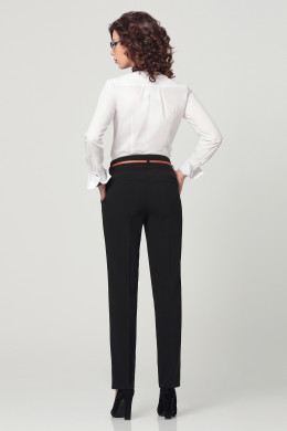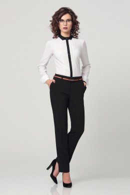 Строгие классические брюки из вискозной костюмной ткани со съемным ремешком. Брюки, чуть зауженные книзу, длиной до щиколотки, со стрелками. По бокам карманы.